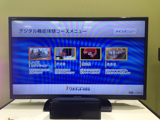 《ノイズリダクション》《PNS(パルスノイズサプレッサー)》《指向性》《SSS》といった、リオネット補聴器のデジタル機能の効果を体験していただけます。