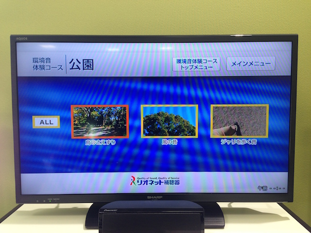 《生活音》《電車 鉄道騒音》《車 道路騒音》《公園》《雑踏》のコースがあり、それぞれに様々な音環境が用意されています。