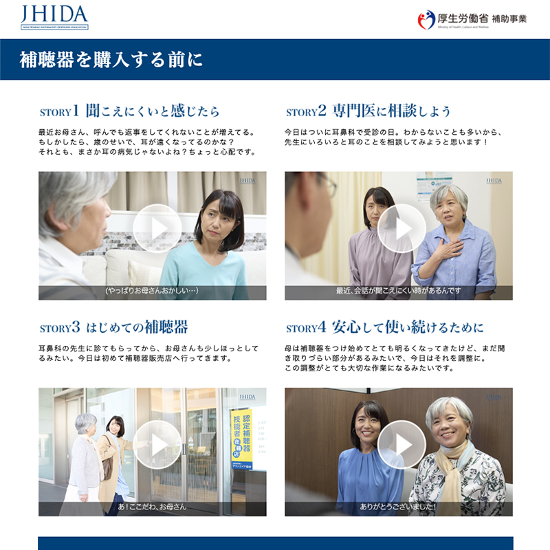 JHIDA(一般社団法人 日本補聴器販売店協会)が、令和3年度厚生労働省補助事業にて普及啓発動画を作成しYouTubeにて公開しました。