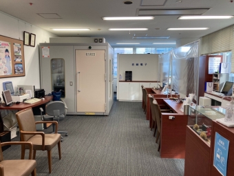 出口から見て左隣のビルです(青い補聴器の看板が見えます)