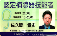 | 認定補聴器技能者 | 佐久間 貴史、佐久間 和史 |